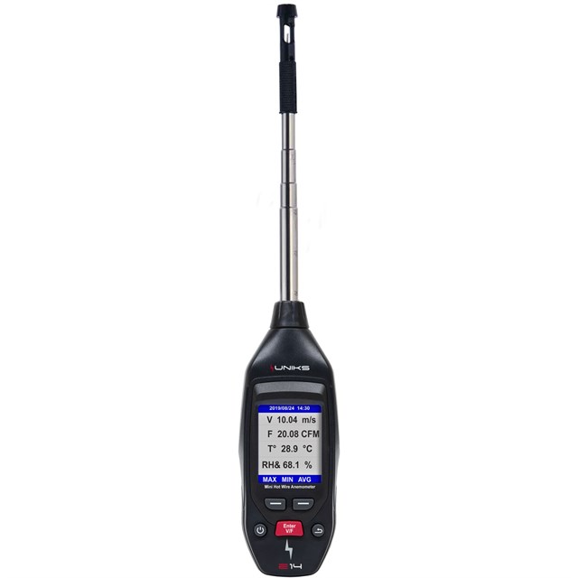 Range Precisione Risoluzione Velocità dell’aria 0,00 a 30,00m/s ±0,10 ±5%m/s (0 a 5m/s) ±0,30 ±5%m/s (5 a 30 m/s) ±0,01 m/s Temperatura 0 a 50°C ±1 °C ( ±2°F) 0,1°C/°F Accessori in dotazione
