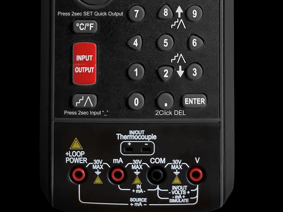 - Misurazione della temperatura (°C, °F) di 8 tipi di termocoppie (K, J, E, T, R, S, N, e B )
