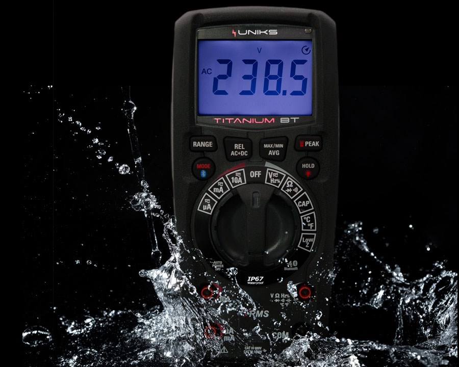 TITANIUM BT di Uniks misura tensione AC+DC e corrente AC+DC fino a 10A in vero valore efficace (TRMS) e in Autorange.