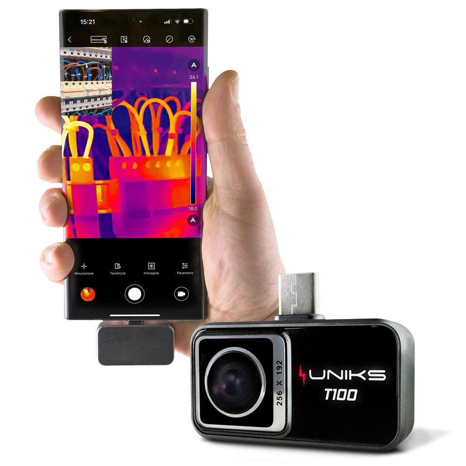 Intervallo spettrale 7.5 to 14 μm Lunghezza focale 3.5 mm Numero -F F1.0 Campo visivo 50°×37.2° Distanza minima di messa a fuoco 0.2 m (0.66 ft) Modalitàdi messa a fuoco Visualizzazione dell’immagine Automatica Palettes di colori Bianco caldo, Nero caldo, Arcobaleno, Colori metallici, Seppia, Colore, Ghiaccio, Fuoco, Pioggia, Rosso caldot, Verde caldo, Blu scuro, Combinazioni Modalità d’immagine Termica, PIP Misurazione e analisi Punto Centrale, Punto Caldo, Punto Freddo Intervallo di temperatura -20°C to 400°C(-4°F to 752°F ) Precisione Massimo (±2°C/3.6°F, ±2%), per temperatura ambiente 15°C to 35°C (59°F to 95°F) e temperature dell’oggetto superiori a 0°C (32°F) Strumenti di misurazione Personalizzabile dall'utente: 3 punti, 3 rettangoli e 1 line Modalità Livello e Span Automatico/Manuale Consumo energetico 360 mW Interfaccia Smartphone Compatibilità con i dispositivi USB-C Android, USB-C iOS, Lightning iOS (incluso un adattatore da Lightning a USB-C)